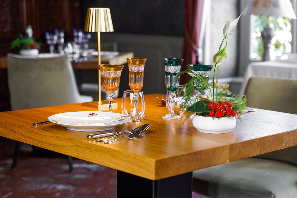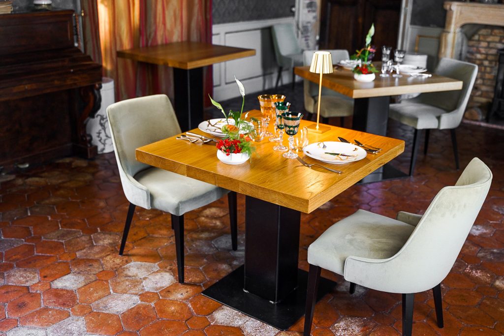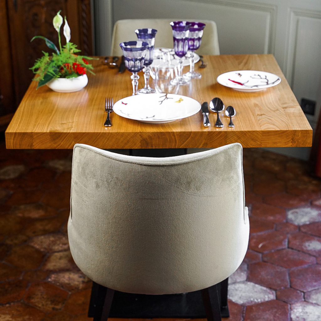 C’est dans le cadre raffiné du Château d’Origny, à proximité de Roanne, que notre atelier Robin Sicle a eu le plaisir de concevoir et de fabriquer un ensemble de tables sur mesure destinées à leur restaurant gastronomique.