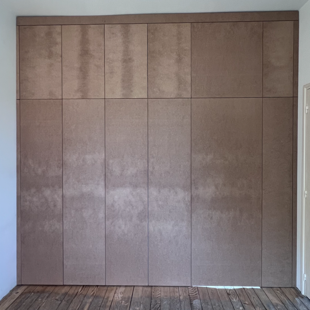 Dans le cadre de ce projet d’aménagement intérieur, notre atelier Robin Sicle a conçu, fabriqué et posé un ensemble de meubles sur mesure comprenant deux dressings intégrés et un meuble sous toit parfaitement adapté aux contraintes architecturales de la pièce.