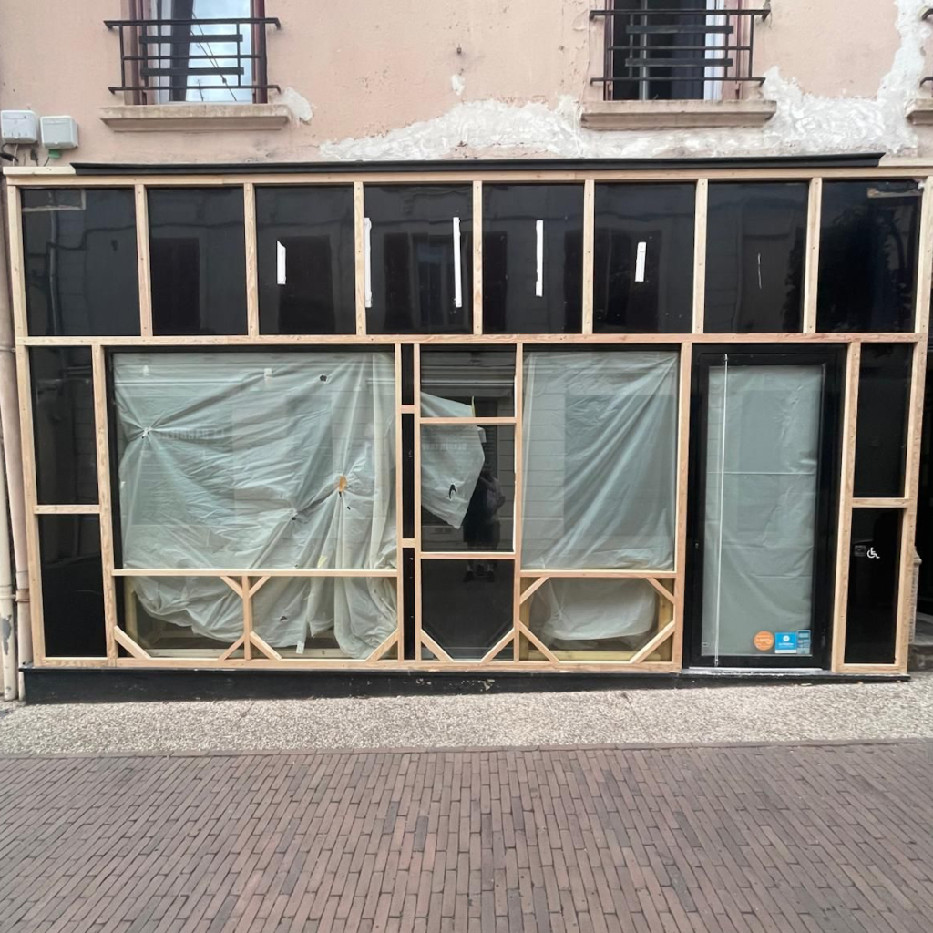 À l’intérieur, notre équipe a prolongé ce travail de cohérence et de mise en valeur avec la fabrication de banquettes sur mesure en médium peint, parfaitement intégrées dans l’espace d’accueil. Un habillage mural a également été conçu pour dissimuler une colonne porteuse et un radiateur, offrant ainsi une finition épurée et homogène. Chaque détail a été pensé pour allier confort, esthétique et durabilité.