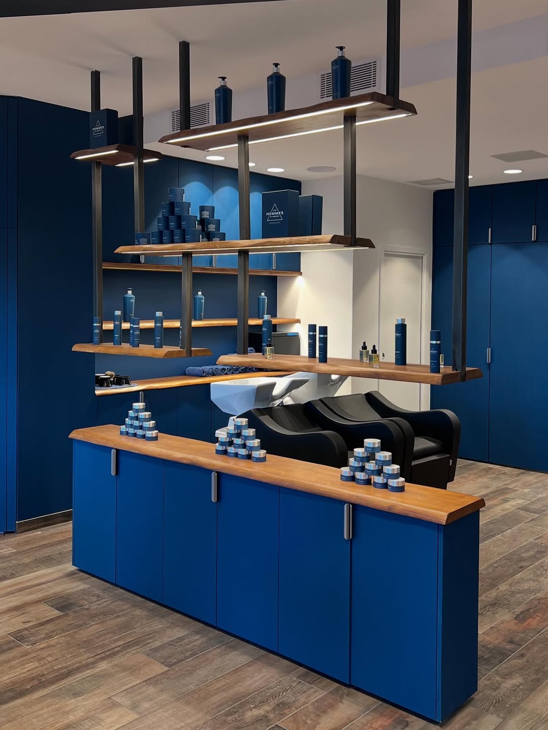 En travaillant en étroite collaboration avec « Les hommes D’abords, nous avons eu l’opportunité d’aménager et de créer du mobilier sur mesure pour leurs salons de coiffure. Ces salons haut de gamme sont reconnus pour leurs prestations uniques et qualitatives. Ils offrent des services exceptionnels dans un cadre à la fois chic et industriel, propre à l’identité de la marque.