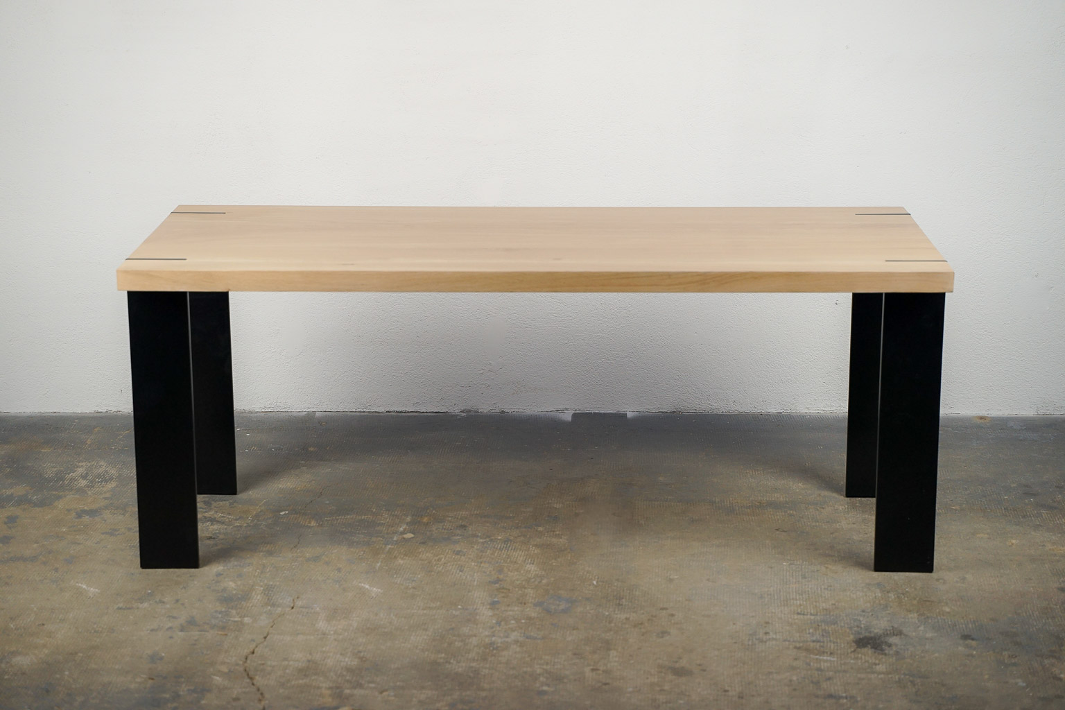 Les pieds de la table Hache sont un véritable chef-d’œuvre, rappelant subtilement la forme d’une hache. Leur finition en peinture noire crée un contraste saisissant avec le chêne naturel, apportant une esthétique moderne et contemporaine à l’ensemble. Cette combinaison harmonieuse de matériaux, chêne et métal, confère à la table un équilibre visuel unique.